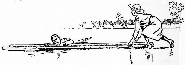 The string should be drawn quite tight, and have only small knots which won’t slip. It is therefore most important that you should learn, as Scouts do, how to tie knots properly.