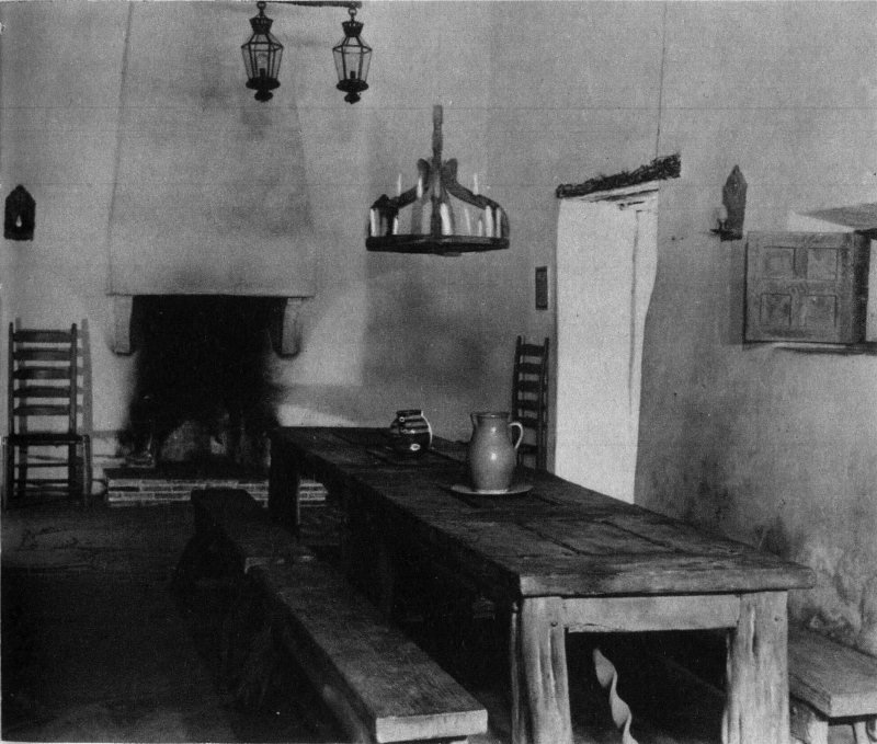 There are four fireplaces in the Palace, each different. According to tradition, sticks of wood were placed on end in one corner of the fireplace and the fair señoritas named each stick for a young señor. He was worthy of her consideration if the stick burned evenly, but if it burned in the middle and fell apart, he was not to be trusted.
