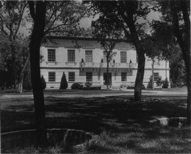 A portion of Randolph Field looking south from the top of the Administration Building. The home in the foreground is that of the commanding officer of the field.
