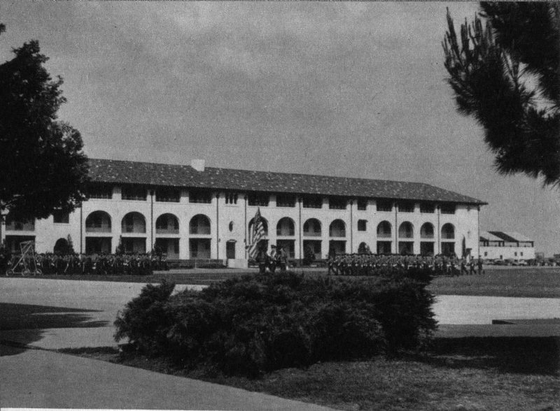Kelly Field, established during World War I, is the oldest advanced flying training school in the nation. The dull gray frame hangars and buildings erected at that time still constitute most of the field’s structures, although in recent years many fine permanent type buildings like the Cadet Barracks pictured here, have been erected.