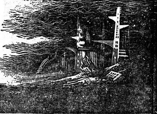 "Familiar, eh?" asked Nolan sardonically. "You recognize the pictures like them before. They weren't made with cameras, like these, but artists drew them from descriptions of what would happen. Here it's happened! I think," he added, looking at the skipper, "that this is more important than fifth planets. I think we'd better go over and get what information we can and take it home. Death like this implies life a lot like men. If non-human creatures can do something as human as this, we'd better get the word back home so something can be done to get ready before we find them—or they find us."