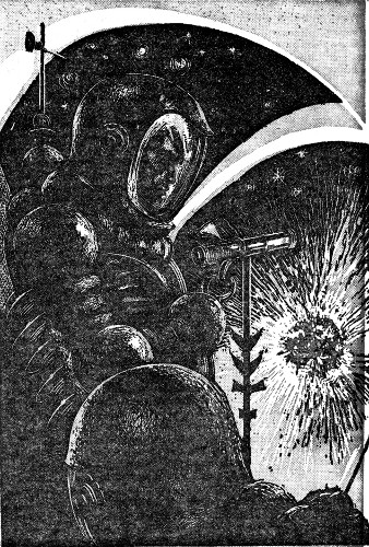He went down into the hold. He turned on the eyepiece. He saw the distinct, luminous disk which was Earth in the not-at-all-believable field of the impossible instrument. He saw points—not dots—of extremely vivid light. Obviously the size of a radioactive object did not determine the brightness of its report to the weapon from Planet Five of Fanuel Alpha. Something else controlled the brilliance.