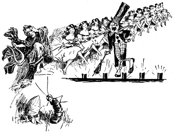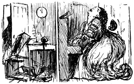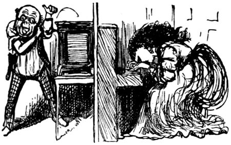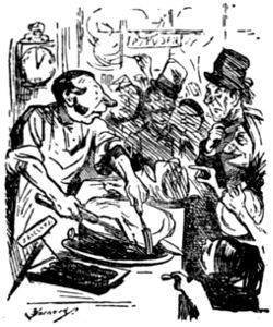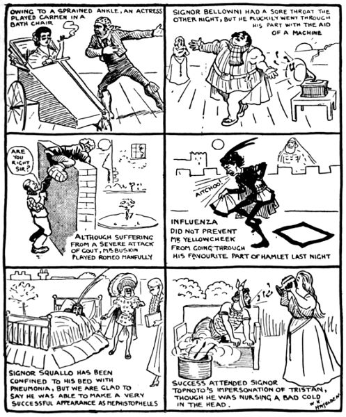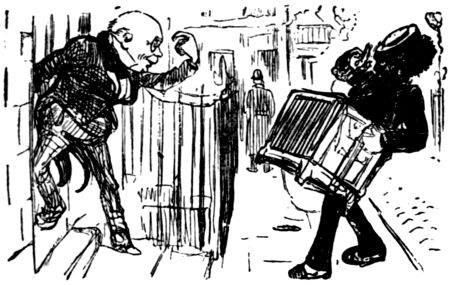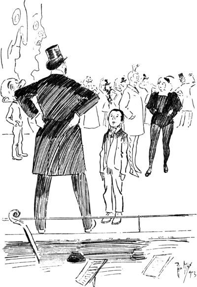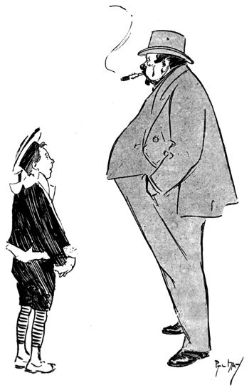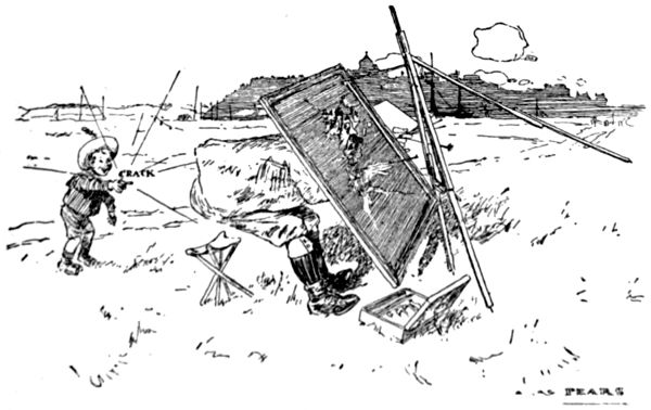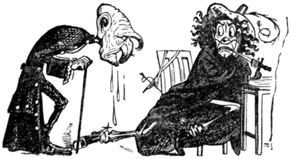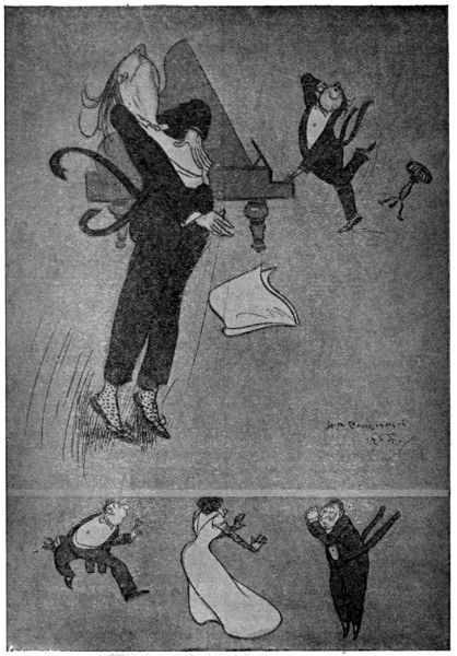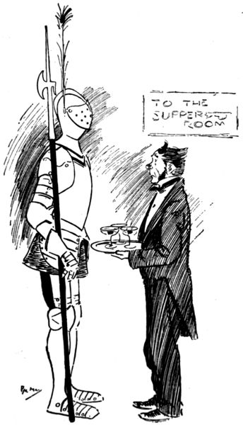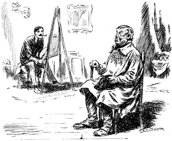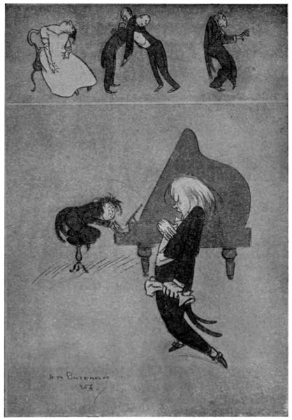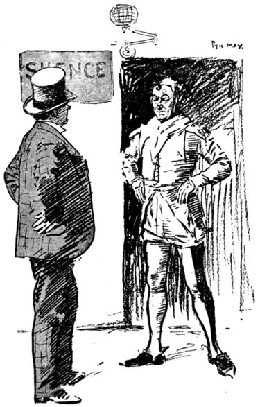 The life of what still passes in London for “Bohemia”—in and about the theatres, the studios and the literary clubs—figures conspicuously in the pictorial humour of our time. It is but natural that the artist in search of inspiration should occasionally turn his attention to his own immediate surroundings, and find subjects for his art in the comic representation of his fellows of the brush and pencil, his friends the authors and the actors, and not infrequently, himself! Some of the most pointed jokes of Keene, Du Maurier and Phil May introduced “the artist,” and in the case of the last mentioned he usually depicted his own form and features, as Cruikshank was fond of doing more than half a century before him.