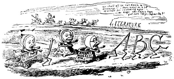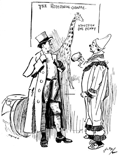 The sources from which the illustrations have been drawn are much the same as those that have provided the other volumes of The Fun Library. In the present volume there is a particularly fine selection from the work of Mr. Haselden, reprinted here by special permission of the editor of The Daily Mirror, and it also contains an important series by the late Phil May, reprinted by arrangement with The Sketch, while we are indebted to Mr. Gilbert Dalziel for permission to use a considerable number of excellent items from Fun and Judy, with which journals he was so long and honourably associated. To Mr. Punch’s collections of the “’sixties” we owe the numerous examples of Leech, Keene and Du Maurier at their best.
