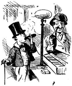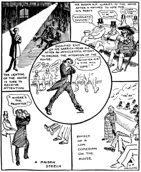 MR BUSKIN M.P. HURRIES TO THE HOUSE AFTER A MATINÉE TO VOTE FOR HIS PARTY