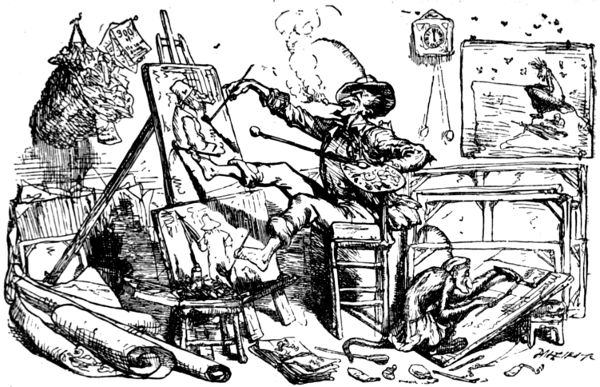 This tradition has been well maintained among the artists of a later day. We shall find that a very considerable proportion of the humorous art of the moment concerns itself with the sayings and doings of our Bohemians—a term, by the way, that indicates a very mild and inoffensive variety of an almost extinct type of character.