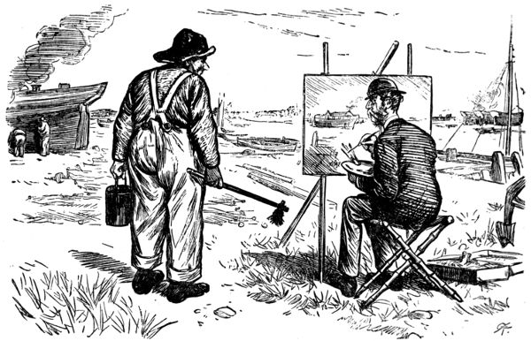 The Artist.—It’s no good making that noise, my good fellow. As I told you just now, being a landscape-painter, I don’t want models.