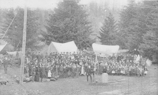 As I sat and mused between courses, it gradually dawned upon my mind that this was in fact as well as in name a "railroad jubilee dinner" and celebration, and not an assemblage to commemorate pioneer deeds as pioneer days; that the "Anniversary" date had been seized upon to attract the widest possible attendance to accomplish another purpose—that the object of the meeting was to obtain a hearing for a "square deal" for the railroads, in a word, to build up a public sentiment favoring the increase of freight rates. This fact became more manifest and more apparent as the program was unfolded in the introduction of five railroad magnates as the principal speakers of the evening, followed by the young governors of the States of Oregon and Washington, but not a pioneer was called or heard. In fact, less than half a dozen of the pioneers of forty years ago were present—a whole generation had passed in these eventful years since 1873.