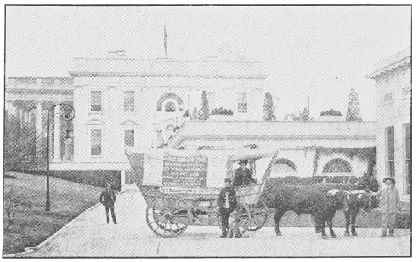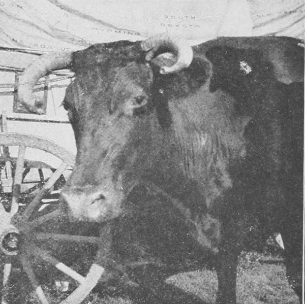 Just to be a "doing" as the saying goes, and to see how it would look, I concluded to cross a river in my wagon box on this last trip when I drove to Washington, and let the moving picture men take it. It was the Loop Fork of the Platte River and about three-quarters of a mile wide. I have the film and some days I showed it in the Washington State Building at the Panama Exposition at San Francisco and every day the oxen themselves could be seen.