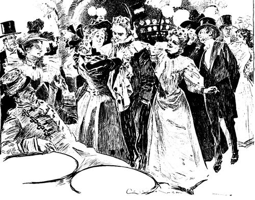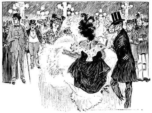Or you will see ambassadors and men of title from the Jockey Club jostling cockney bookmakers and English lords to look at a little girl in a linen blouse and a flat straw hat, who is dancing in the same circle of shining shirt-fronts vis-à-vis to the most-talked-of young person in Paris, who wears diamonds in ropes, and who rode herself into notoriety by winning a steeplechase against a field of French officers. The first is a hired dancer, who will kick off some gentleman's hat when she wants it, and pass it round for money, and the other is the companion of princes, and has probably never been permitted to enter the Jardin de Paris before; but they are both of the same class, and when the music stops for a moment they approach each other smiling, each on her guard against possible condescension or familiarity; and the hired dancer, who is as famous in her way as the young girl with the ropes of diamonds is in hers, compliments madame on her dancing, and madame calls the other "mademoiselle," and says, "How very warm it is!" and the circle of men around them, who are leaning on each other's shoulders and standing on benches and tables to look, smile [Pg 152] delightedly at the spectacle. They consider it very chic, this combination. It is like a meeting between Madame Bernhardt and Yvette Guilbert.