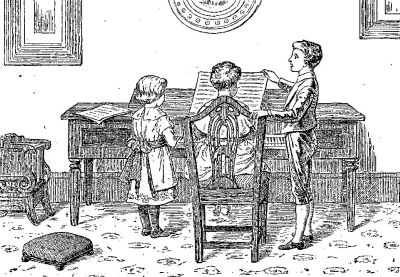 I thought I would write you a letter and tell you of two nice games, one for in and the other for out doors. The one for the house is called "Going to Jerusalem." One person plays the piano, or makes some kind of a noise. Place the chairs in a row across the room, every other chair in an[Pg 207] opposite direction, one less than there are players to go round the chairs, and when the music stops, each player must sit down, and of course one will be left out. Then one chair is taken away, and the person who could not get seated can not play any more, and so on until there are but two players going round one chair, and the one who gets seated goes to Jerusalem, and wins the game.
