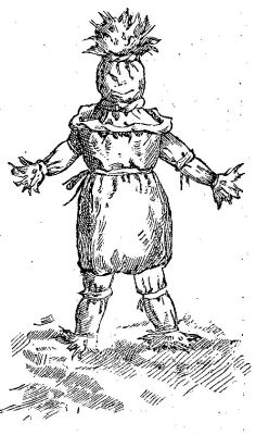 A large party of people at a small country hotel were yawning away the evening, as they often do in such places, when the inspiration seized one of the most able-bodied yawners to do something to break up the monotony. Taking into his confidence little Tom Wittles, an admirable boy, with a large faculty for fun and mischief, he induced that youth to purloin his grandmother's spectacles. With this modest instrument and a paint-box belonging to one of the guests, they retired to a bedroom, where the gentleman painted the surface of the spectacles all over with white paint, and then neatly cleared a round spot in the centre of each glass. He then painted a couple of pointed eyebrows on his own forehead with black, and put on the spectacles. Then he tousled his hair, and twisted a few threads of white and red worsted amongst it. This gave him an appearance awful to behold, of which Fig. 1 gives but a very faint idea.