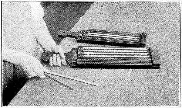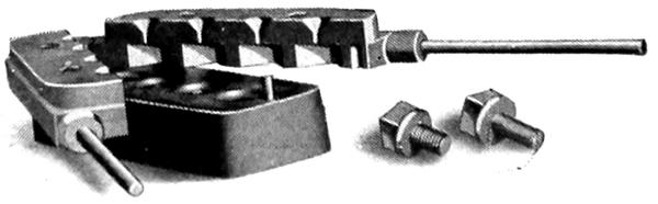 Placing the mould as in Figure 7, the lead is poured in the four openings until the metal projects slightly above the top.