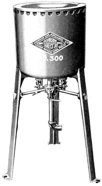 No. 300 Pot. Melts 150 lbs. lead at a charge, using only 40 cubic feet of city gas per hour. Has 3 Direct-jet Burners. No forced draft necessary. Height, 28 inches; weight, 100 lbs. Price f. o. b. Cedar Rapids, Iowa, $25.00. Stock No. MJP1.