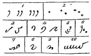 This system came to an end, however, and was replaced by the use of a series of characters. These were called neumæ, and each character had a different name. The first was known as the virga, and it was a long single note; the bivirga represented two notes; the trivirga, three; the punctus was a short note, etc.