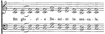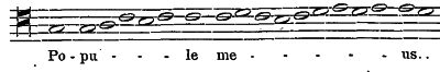 Fig. 1 shows the neumæ. There are ten here, but authorities differ as to the number that were really in use. These neumæ were placed over the words, as shown in Fig. 2. We are not quite certain what melody they here represent, but the solution given underneath is the probable one: