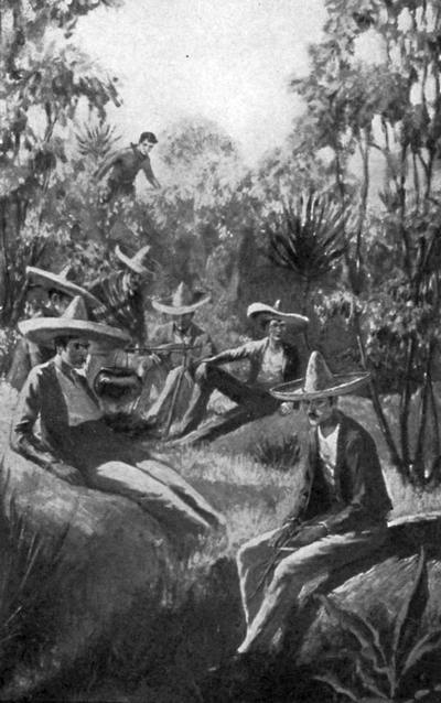Without stopping to collect their rifles, which they had carelessly piled against the trees, the Mexicans dashed off at top speed, stumbling and then struggling to their feet again and dashing on in their wild panic.