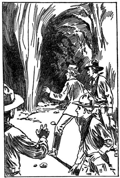 With a series of the most unearthly screeches, the Border Boys and their companions dashed from the cave mouth. Truly they must have been a terrifying spectacle with their glaring green faces and hands, emerging as they did from a cave which the superstitious Mexicans firmly believed to be haunted.
