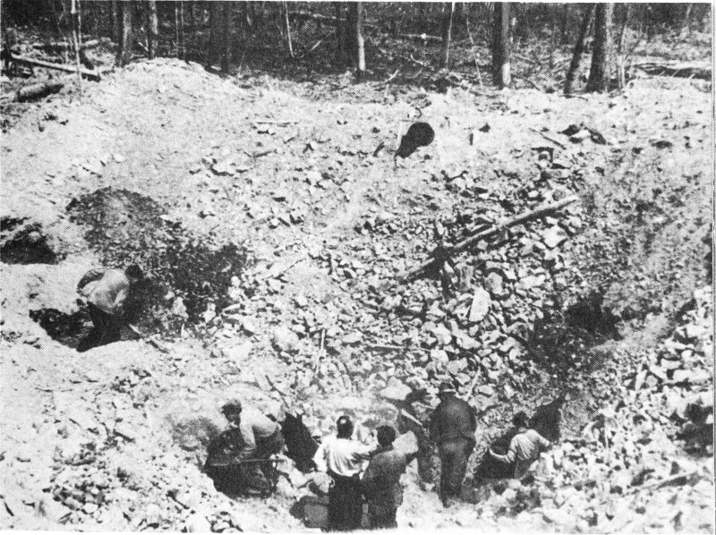 COURTESY OF E. L. KRINOV Workmen excavating one of the large craters formed by the impact of the Ussuri meteorites.