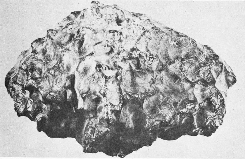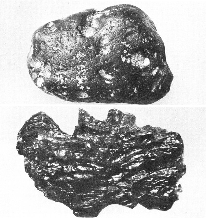 COURTESY OF E. L. KRINOV An individual Ussuri meteorite with fusion crust and characteristic surface sculpturing produced during high-speed flight through the resisting atmosphere.