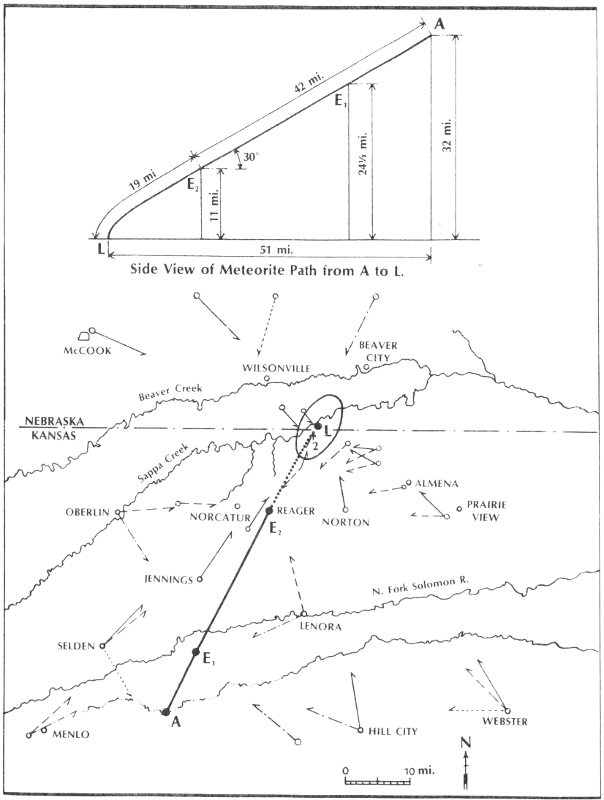 Although startled by the brilliant fireball and the strange thundering noises, the young girl, whose face had been turned skyward as she hung up the clothes, noted very carefully where 24 she had seen the fireball disappear behind the tallest building in her home town. (Her sighting was later of great value to field parties from the Institute of Meteoritics of the University of New Mexico.)