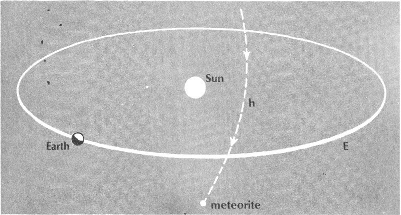 Let us turn now to another important application of meteoritics. Any body in motion through the air or in space has a “striking power” of sorts. For some objects, this striking power, which is technically known as ballistic potential, is very weak, as in the case of silky milkweed-down drifting through the air. Hailstones have a good deal more striking power, as may have been painfully demonstrated on your own head. And, finally, such masses as falling meteorites (and especially those orbiting in space, unretarded by atmospheric resistance) have an extraordinarily formidable ballistic potential. This is because meteorites are not only tough and dense, as good projectiles must be, but are also moving at high velocities—particularly high if the meteorites come into the Solar System from interstellar space.