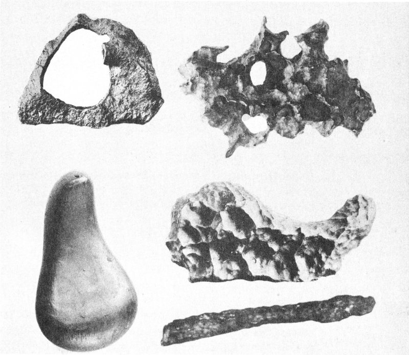 Scientists and farmers soon found many other fragments during systematic searches of the rolling farm and pasture lands. The fourteen-year-old boy who had been walking with his mother at the time of the fall discovered a 130-pound fragment of the meteorite in a pasture that had already been carefully searched by grown-up meteorite hunters! This find was one of the two largest fragments recovered from the entire fall. The landing place of this large piece was marked only by a small hole in the sod, but, on prodding into this hole, the boy struck something rather solid. He ran at once to tell the lady who owned the pastureland, and together they dug out the fine meteorite.