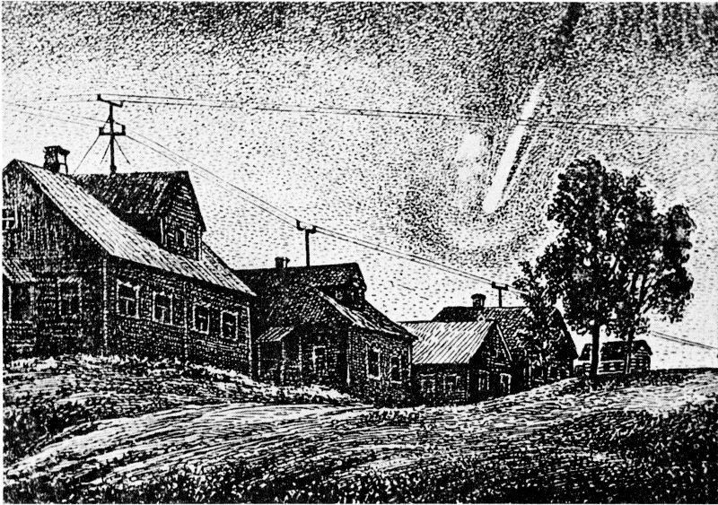 Painting of the Ussuri fireball by the Iman artist, P. I. Medvedev.