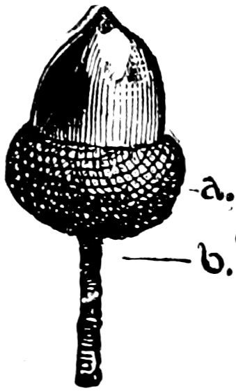A nickel-plated acorn, as shown in the accompanying cut, makes a very fine finish on the point of a polished horn. B is a wire stem attached to the acorn, and is intended for fastening it to the horn. They are made as follows: If made of metal, they are cast on the stem and then turned. If brass, they are polished; but if iron, turned and then bronzed, painted or nickel-plated. If made of horn, first put in the stem and then turn and polish them. To put them on the horn, saw off the point of 114the horn, drill a hole in the end of same, the size of the stem, put a little glue in the hole and drive the stem in tight. The horn should be polished before putting the knob on. Round knobs are also very nice, put on in the same way. This way of putting them on is much better and easier than the old way of screwing them on.