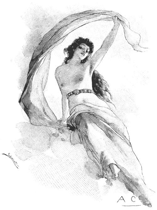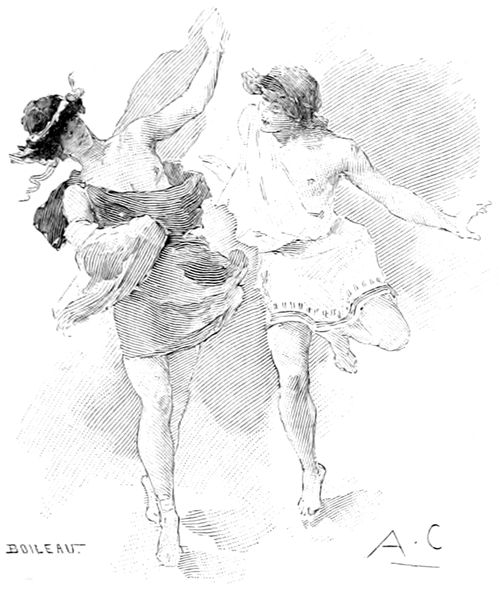 Elle dit et attachant ses belles sandales d'or et d'ambroisie, elle partit sur le souffle des vents et s'arrêta devant la porte du palais d'Ulysse, prenant la figure de Mentès, chef des Taphiens. Là, sont les fiers prétendants réjouissant leur cœur; les serviteurs empressés versent le vin dans les cratères et découpent des viandes en abondance.