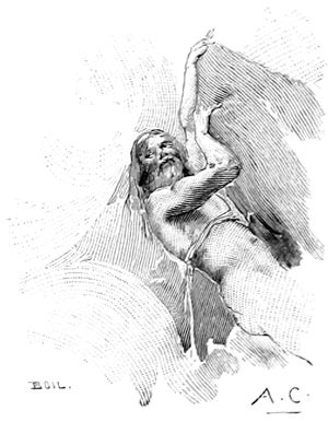 Il dit, et la sombre douleur envahissait plus encore le cœur de Laërte. Prenant dans ses mains de la terre, il la répandit sur sa tête blanche. A ce spectacle, Ulysse profondément ému, s'élança vers son père bien-aimé, le serra dans ses bras et lui dit: