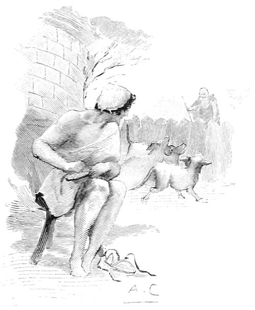 —Vois d'abord la cicatrice que m'a faite la blanche défense d'un sanglier lorsque j'allai sur le Parnèse voir Autolycus, le père de ma mère chérie. De plus, je vais te nommer les arbres que tu me donnas jadis quand tout enfant, je te suivais au jardin. Tu me donnas d'abord treize poiriers, dix pommiers et quarante figuiers; puis tu me promis en outre, cinquante rangées de vignes entre lesquelles le blé mûrissait.