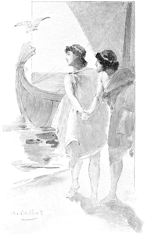 —Antinoos, il ne m'est plus permis de me divertir avec vous; vous avez dissipé mes biens, alors que j'étais enfant; aujourd'hui, je m'instruis, ma volonté se développe, elle m'excite à partir, et puisque les Grecs m'ont refusé un vaisseau et des rameurs, je partirai comme simple passager.