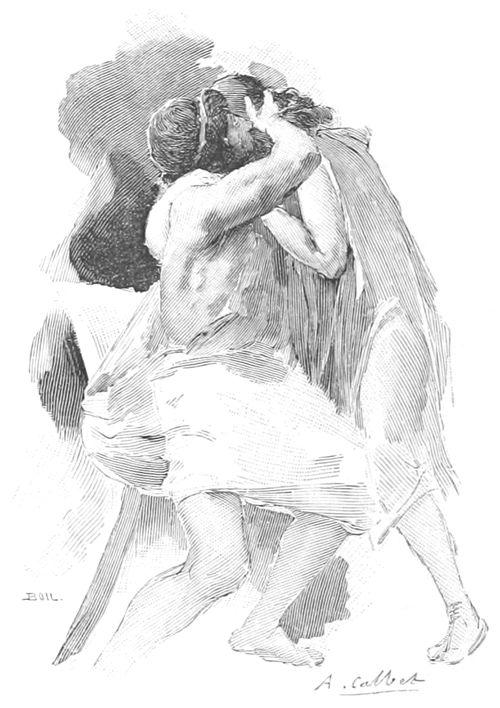 Il dit et Laërte sentit fléchir ses genoux. Il prit dans ses bras son fils bien-aimé et le héros soutint contre son cœur son père près de défaillir. Quand Laërte reprit ses sens, il s'écria: