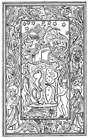 Heraldry plays a considerable part in English bookbinding, but not so remarkable a one as it does in French bookbinding. From royal books downwards, persons of distinction, ecclesiastics of all ranks, ladies and private persons, all liked to have their books ornamented with their coats-of-arms as a principal ornament.