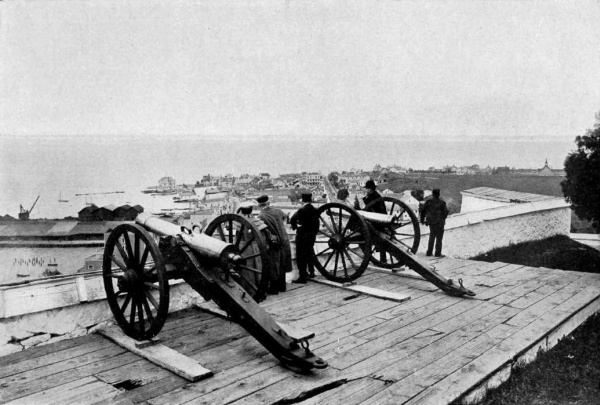 The following year opened more auspiciously for the Americans, who were the first to begin active hostilities. On April 25th, Commodore Chauncey set sail with a squadron of fourteen vessels and seventeen hundred troops to attack York (Toronto). At this time York was poorly defended notwithstanding the fact that a 24-gun ship was almost completed in the harbour and an immense quantity of supplies were stored there. The Americans began disembarking early in the morning of the 27th, under the command of Brigadier-General Pike, while the armed schooners beat up to the fort and opened on it with their long guns. A strong wind forced the small boats, in which the troops were being carried, so close to the works that the landing instead of being made at a safe distance as had been planned was in the face of a galling fire. Despite this, General Pike assembled his men on the beach and began an immediate202 assault, the Canadians and English being driven from their works with heavy loss. In the moment of defeat, the garrison fired their powder magazine, and in the terrific explosion that followed, fifty-two of the victors were killed and one hundred and eighty wounded. Altogether the Americans lost seventy killed in both the land and naval forces, and the British one hundred and eighty killed and wounded and two hundred and ninety prisoners. The 24-gun ship was burned, and another vessel, the Gloucester, was added to the American fleet.