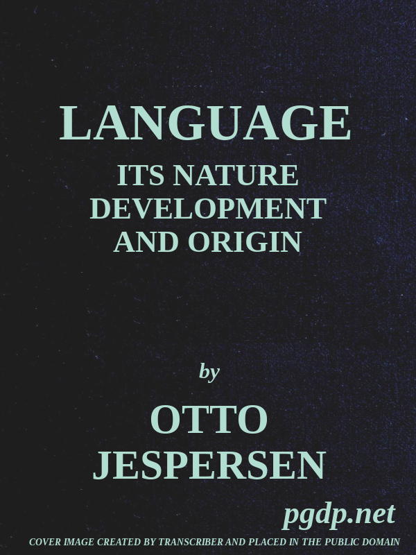 It is indeed possible to speak of ‘life’ in connexion with language even from this point of view, but it will be in a different sense from that in which the word was taken by the older school of linguistic science. I shall try to give a biological or biographical science of language, but it will be through sketching the linguistic biology or biography of the speaking individual. I shall give, therefore, a large part to the way in which a child learns his mother-tongue (Book II): my conclusions there are chiefly based on the rich material I have collected during many years from direct observation of many Danish children, and particularly of my own boy, Frans (see my book Nutidssprog hos börn og voxne, Copenhagen, 1916). Unfortunately, I have not been able to make first-hand observations with regard to the speech of English children; the English examples I quote are taken second-hand either from notes, for which I am obliged to English and American friends, or from books, chiefly by psychologists. I should be particularly happy if my remarks could induce some English or American linguist to take up a systematic study of the speech of children, or of one child. This study seems to me very fascinating indeed, and a linguist is sure to notice many things that would be passed by as uninteresting even by the closest observer among psychologists, but which may have some bearing on the life and development of language.