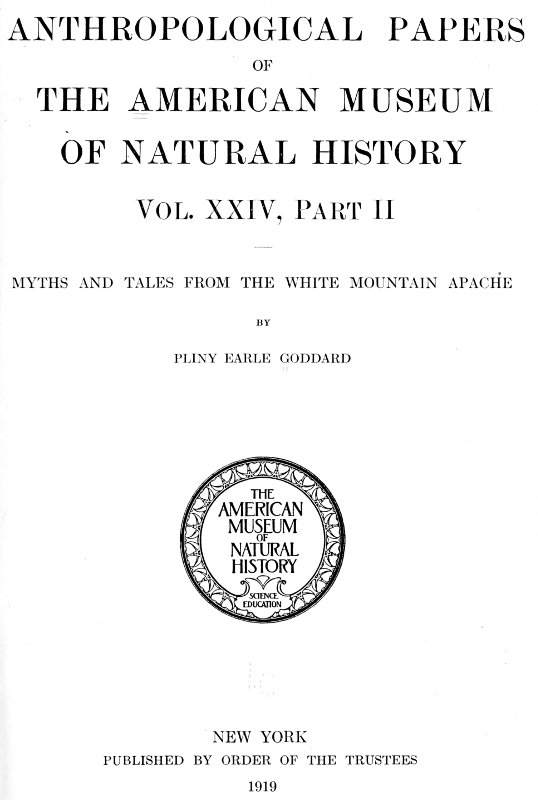 The main purpose in recording these narratives was to secure sufficient and varied connected texts in the dialect of the White Mountain Apache. As a collection of mythology and folklore it is probably far from complete. It is assumed, however, to be fairly representative.