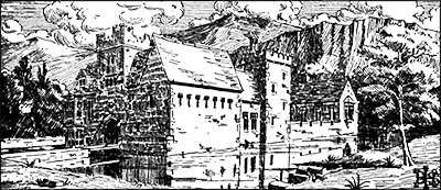 “I AM so tired of this rain,” said Audry, as she rose and crossed the solar[1] and went to the tall bay window with its many mullions and sat down on the window seat. “It is three days since we have been able to get out and no one has seen the top of Mickle Fell for a week. The gale is enough to deafen one,” she added, “while the moat is like a stormy sea,—and just look at the mad dancers in the rain-rings on the water!”