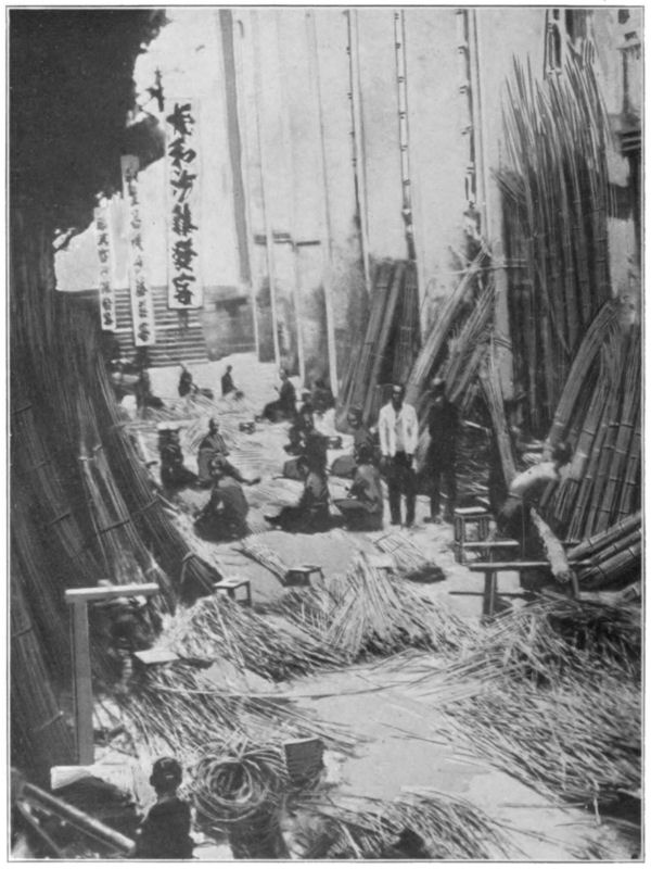 A TYPICAL ALLEY SCENE IN HONG KONG SHOWING NATIVE MEN AND WOMEN SORTING AND STRIPPING RATTAN.