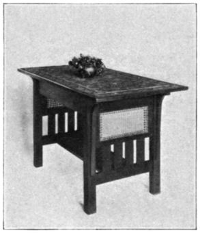 Willow stems or rods are cut when several feet long. They are then soaked in water and the outer bark peeled. The rods are then sorted, bundled and shipped to the dealer or user. The peeling is generally accomplished by hand with a peculiarly forked stick or rod. Commercially there are what are termed dry peeled rods and steam peeled rods, with the former in favor for furniture of the better class. They sell for from 6 cents to 15 cents per pound, depending on quality, length and method of peeling. Willow stems are used extensively in basketry, and for porch and summer furniture. They could be used effectively on such a table as shown in Fig. 69, but cannot generally be utilized advantageously in school shops for seating purposes only. However, they have very definite uses on some structures, and an adequate supply should be kept on hand for use when opportunity offers.