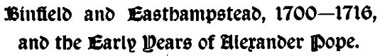 | Binfield and Easthampstead, 1700-1716, and the Early