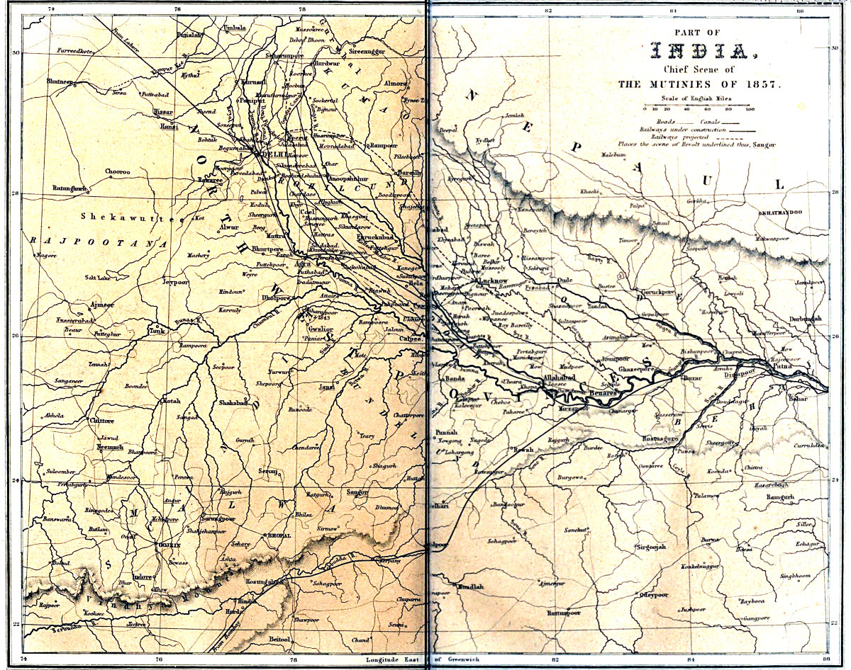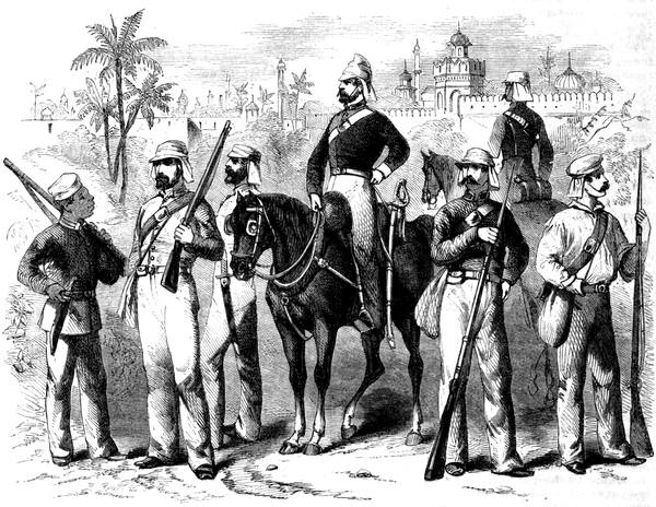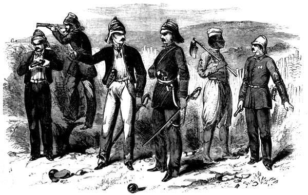 A chronicle of these events reveals also the striking differences between various parts of India. While Behar, Oude, Rohilcund, the Doab, Bundelcund, Malwah, and Rajpootana were rent with anarchy and plunged in misery, the rest of India was comparatively untouched. Most important, too, is it to trace the influence of nation, caste, and creed. Why the Hindoos of the Brahmin and Rajpoot castes rebelled, while those of the lower castes remained faithful; why the Sikhs and Mussulmans of the Punjaub shewed so little sympathy with the insurgents; why the Hindoos of Bengal were so timidly quiet, and those of Hindostan so boldly violent; why the native armies of Madras and Bombay were so tranquil, when that of Bengal was so turbulent?—were questions which it behoved the government to solve, as clues to the character of the governed, and to the changes of discipline needed. It was a time that brought into strong relief the peculiarities of the five chief classes of Europeans in India—Queen’s soldiers, Company’s soldiers, Company’s ‘covenanted’ servants, ‘uncovenanted’ servants, and residents independent of the Company; and it shewed how nobly these classes forgot their differences when the honour of the British name and the safety of India were imperiled.