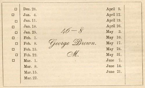 Clinton B. Fisk, A. P. Foster, E. A. Graves, S. B. Halliday, Sam’l Holmes, |