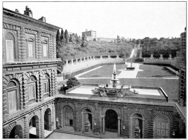 Buontalenti, one of the leading Florentine architects of the sixteenth century, was also distinguished as a sculptor and painter. He built the villa of Pratolino and carried on the planning of the Boboli garden. His other works in Florence are: the façades of the Palazzi Strozzi and Riccardi, the Palazzo Acciajuoli (now Corsini), the corridor leading from the Uffizi to the Pitti Palace, and the casino behind San Marco. At Siena, Buontalenti built the Palazzo Reale, and at Pisa, the Loggia de’ Banchi.