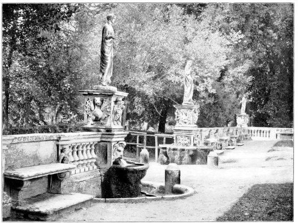 The recognition of this fact was the first step in the development of the great garden-art of the Renaissance: the next was the architect’s discovery of the means by which nature and art might be fused in his picture. He had now three problems to deal with: his garden must be adapted to the architectural lines of the house it adjoined; it must be adapted to the requirements of the inmates of the house, in the sense of providing shady walks, sunny bowling-greens, parterres and orchards, all conveniently accessible; and lastly it must be adapted to the landscape around it. At no time and in no country has this triple problem been so successfully dealt with as in the treatment of the Italian country house from the beginning of the sixteenth to the end of the eighteenth century; and in the blending of different elements, the subtle transition from the fixed and formal lines of art to the shifting and irregular lines of nature, and lastly 8in the essential convenience and livableness of the garden, lies the fundamental secret of the old garden-magic.