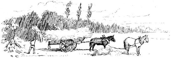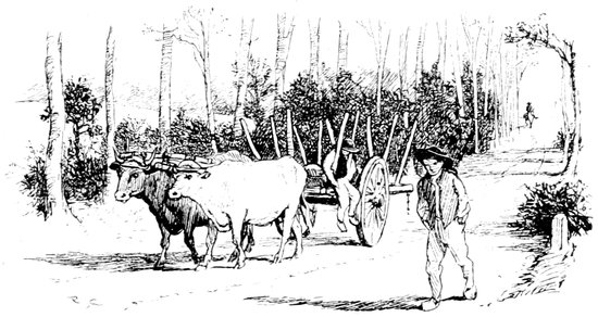 163Up and down again on a good road, a drive of seventeen miles from Le Faouet takes us to Guéméné, meeting a few reapers, and a cart drawn by bullocks in charge of men who have succumbed to thirst and heat.