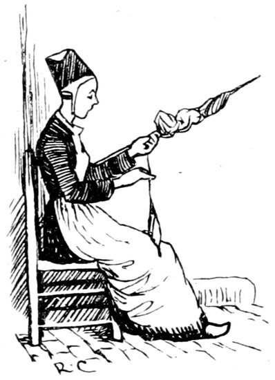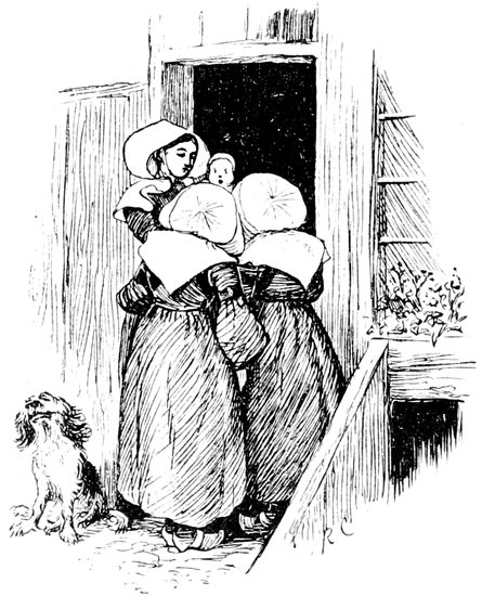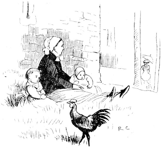 Are the fashions changing in Brittany? or is it only the usual tourists’ cry, the complaint of those who resent all change in costume and dwellings in order that villages should remain “picturesque,” who look upon their brother living in a hovel as they do upon an old door-knocker or a china plate? Let us think of the influences at work in out-of-the-way places, where the travelling marchand des bottes, who has followed us through nearly every village in Brittany 195with his caravan of side-spring boots, plies his terrible trade; and let us remember the expression on the faces of the dancers in the booth at Châteauneuf du Faou, at the arrival from Quimper of the “fine lady,” who stands up with her relations to dance the gavotte in the latest fashion of the towns.