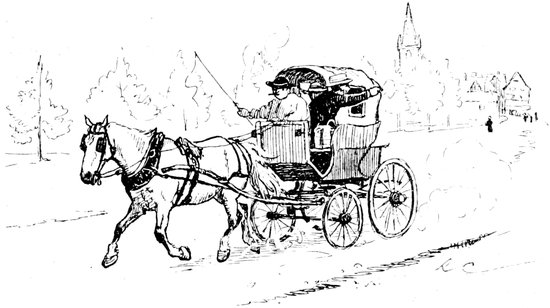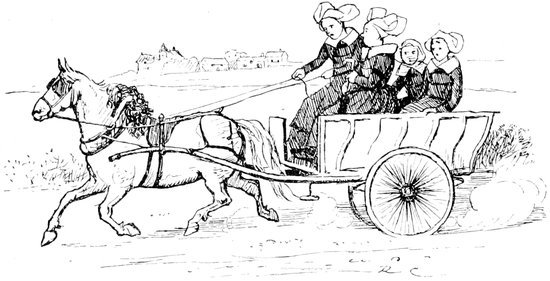 162“After resting for the night in a comfortable room, separate from the main premises, I hire a vehicle to take me to Le Faouet, as the morning is wet; a long-bodied cart, drawn by a white horse, with the wheels set forward and a shifting seat, on which is a large pillow. We drive through a hilly, wooded country in a high wind.”