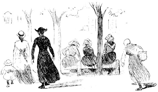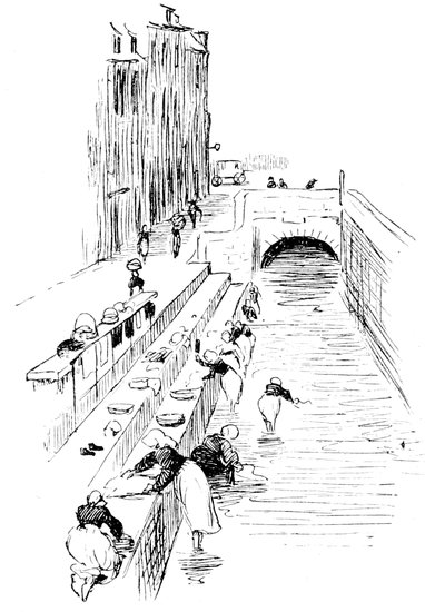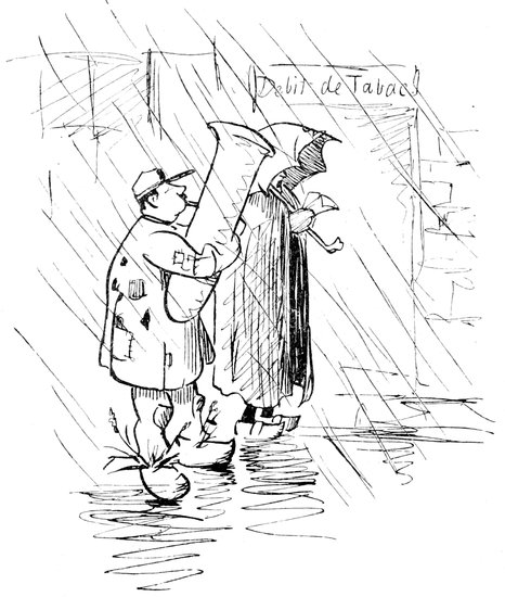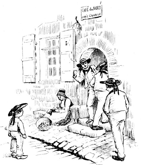 168The Café du Nord is a favourite house of call, and thither the men resort to play at cards or billiards, whilst the women bring out their chairs and sit under the eaves, knitting, gossiping, and watching the passers-by.